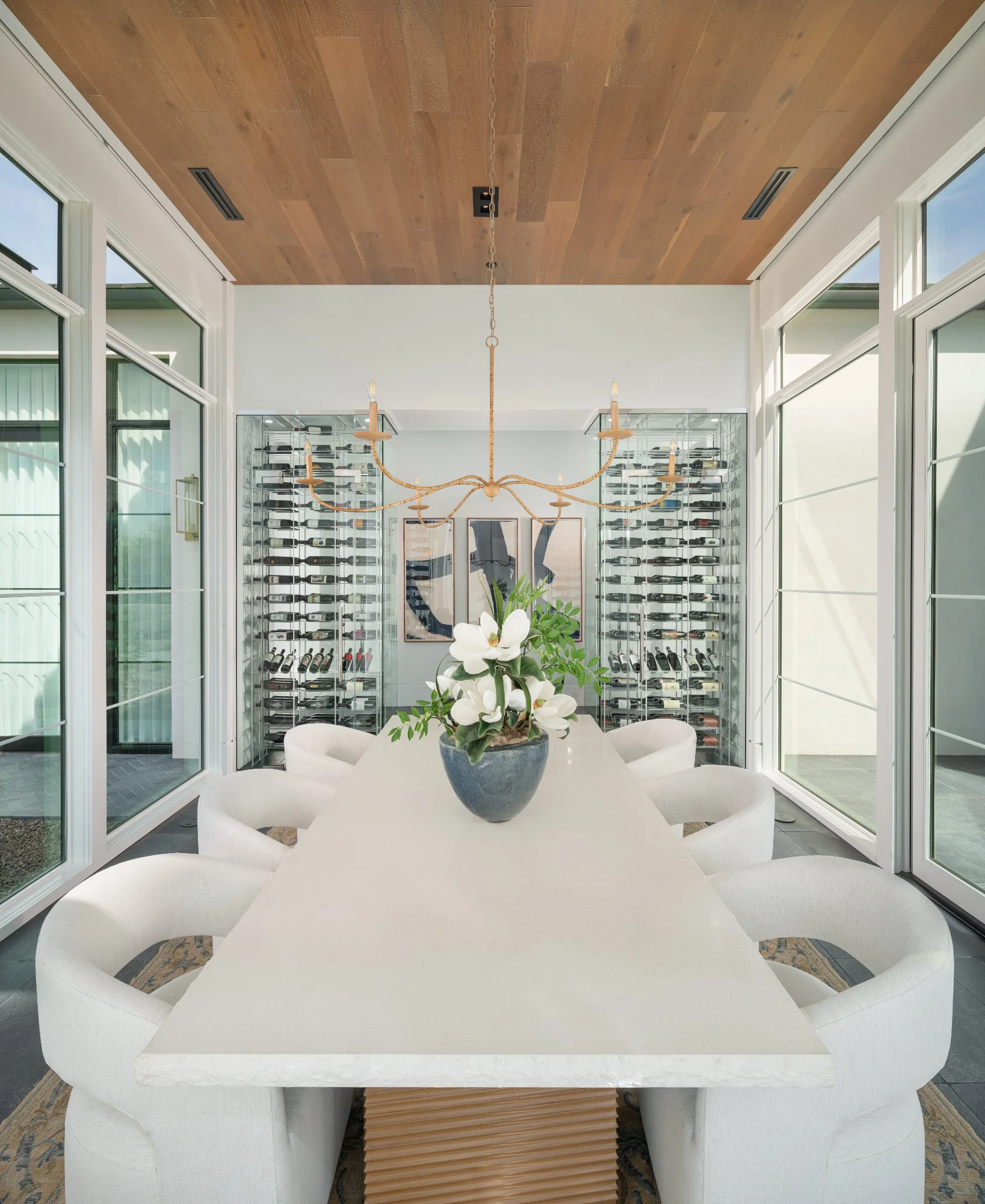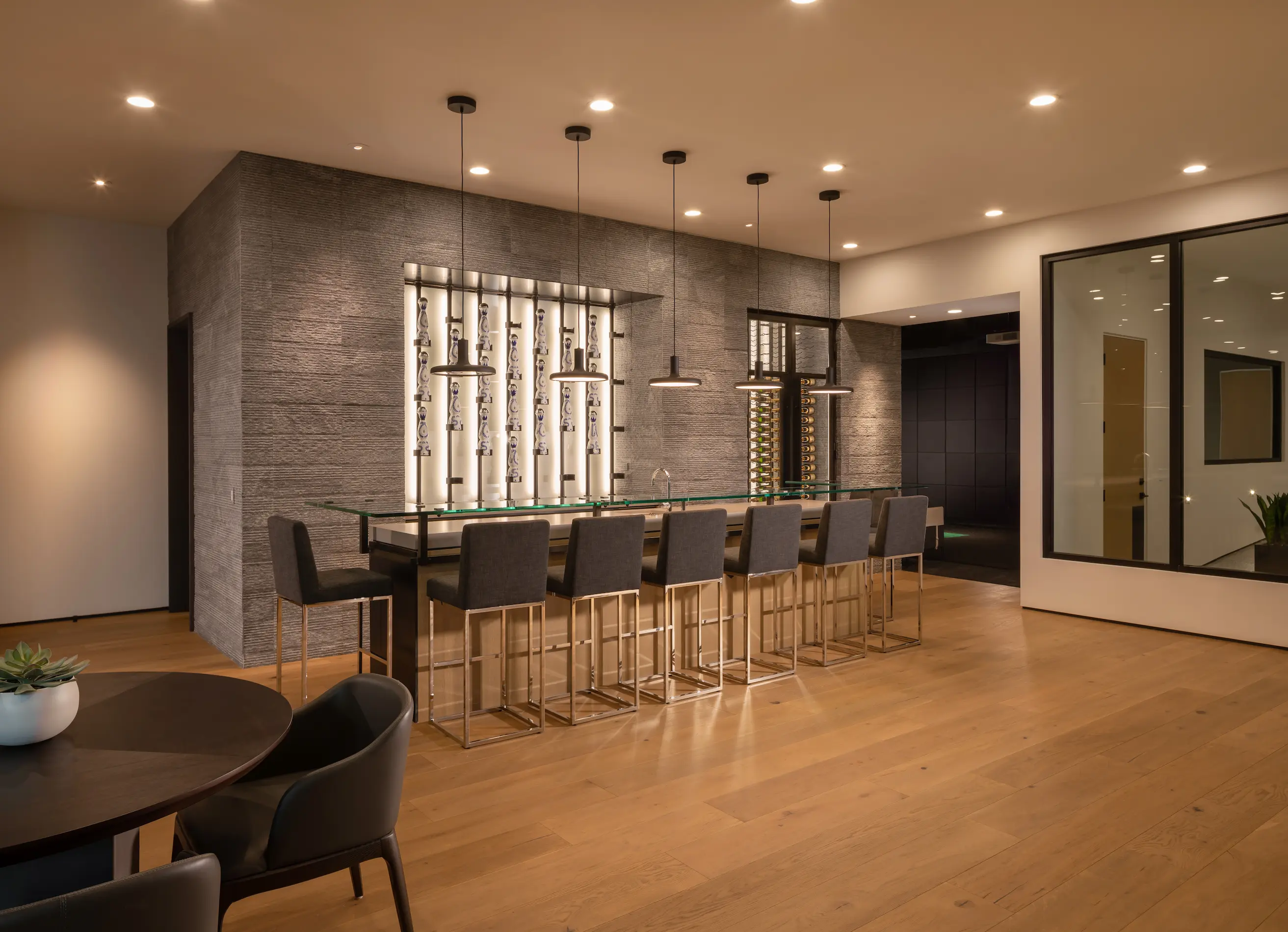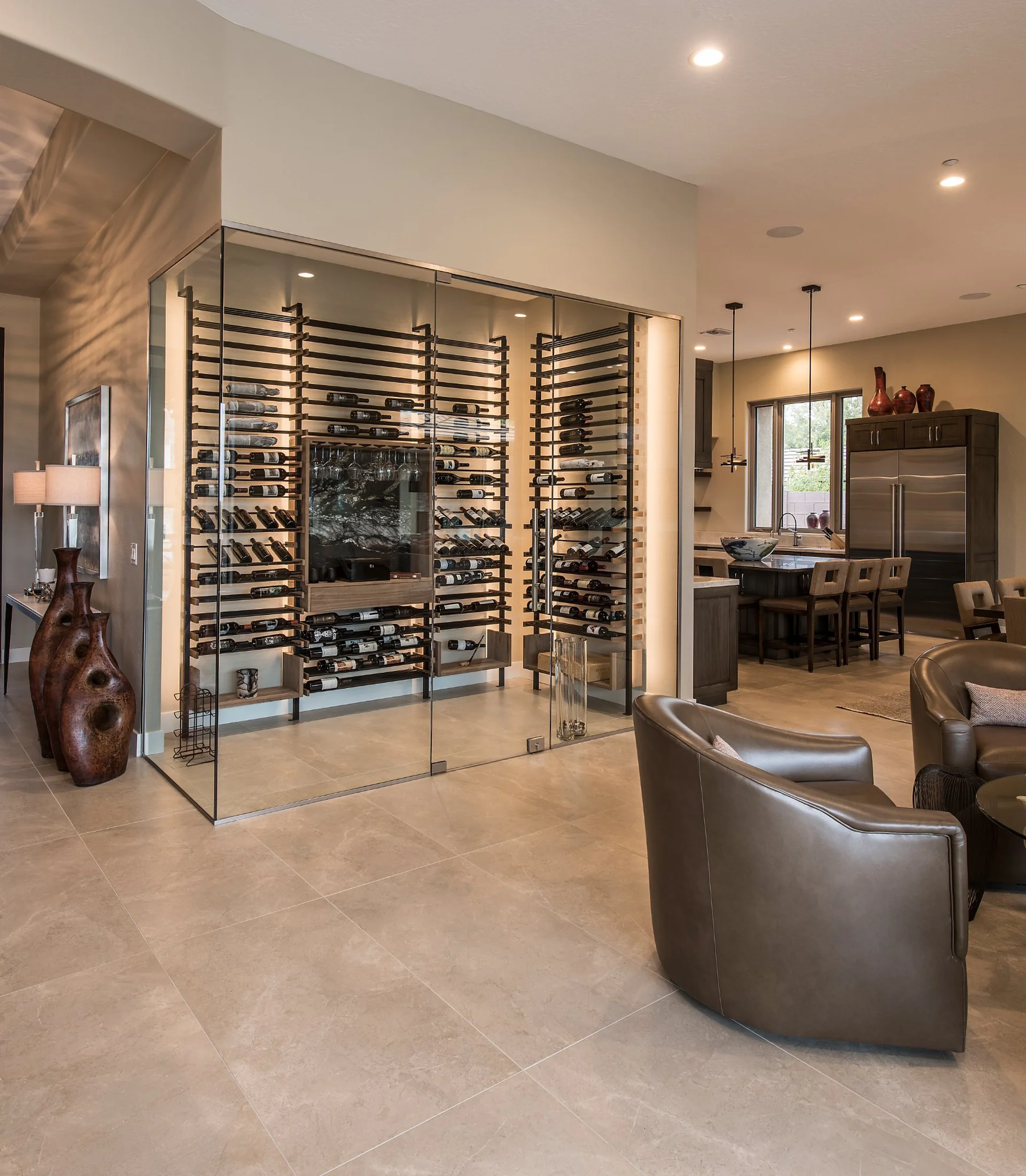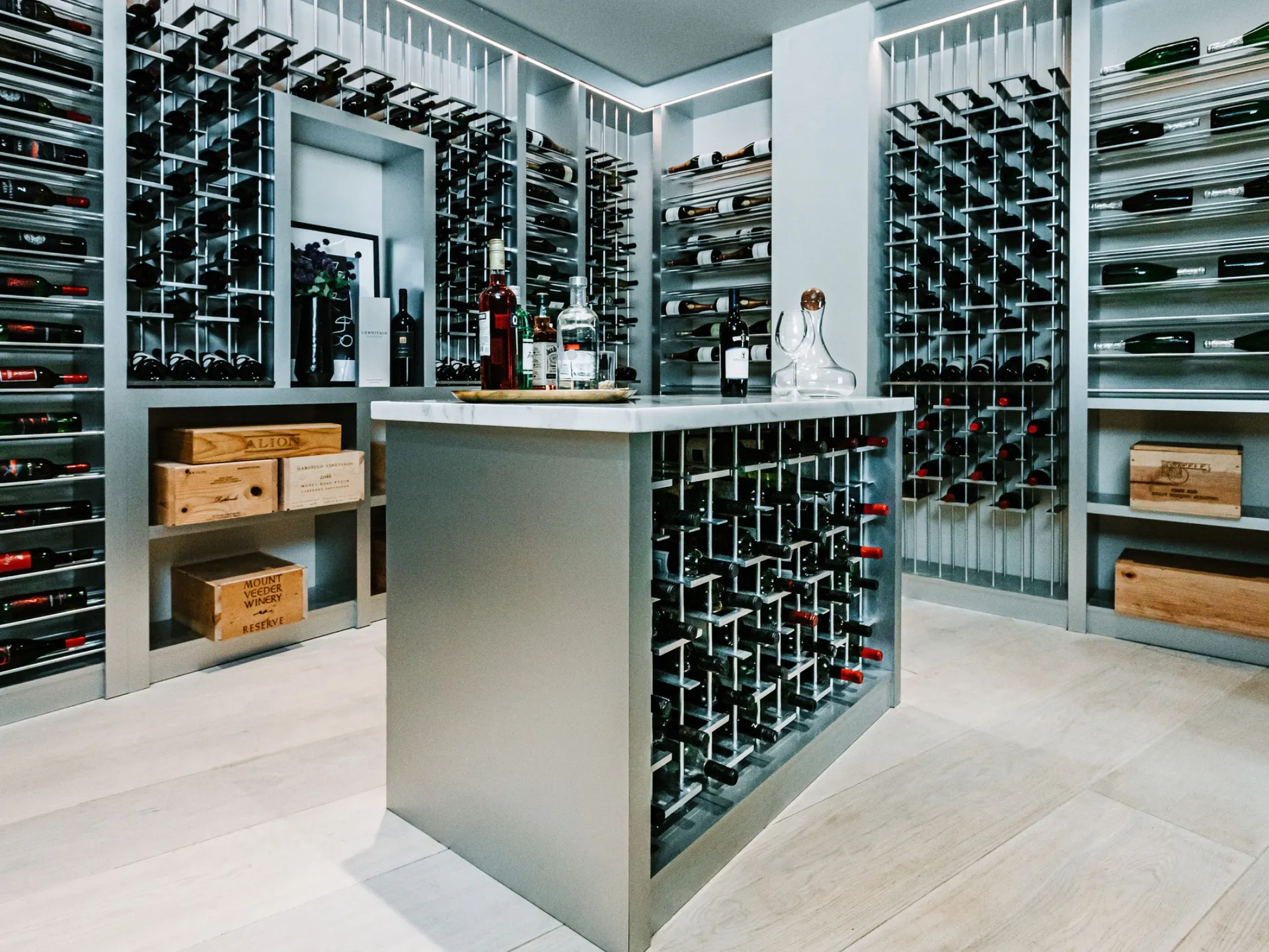 Minimalist design, clean geometry, and architectural glass define this modern wine cellar style. Each space is engineered for precise climate control while showcasing the collection as a visual centerpiece. Our contemporary cellars pair metal accents, frameless enclosures, and integrated LED lighting for a sleek, gallery-like display.